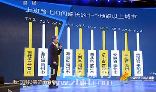 3月9日,央視財(cái)經(jīng)頻道《中國經(jīng)濟(jì)生活大調(diào)查2014—2015》發(fā)布多組數(shù)據(jù),其中一組數(shù)據(jù)顯示:中國人上班路上的時(shí)間達(dá)到55分鐘,比世界平均水平長15分鐘。上班路上時(shí)間最長的十大地級以上城市依次為:吉林長春、浙江衢州、重慶市、河南周口、云南昭通、湖北武漢、遼寧營口、安徽亳州、福建漳州、貴州貴陽。其中,周口以69.4分鐘的上班路上時(shí)間位列第四。