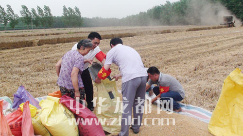 ???? 6月7日,商水縣鄧城鎮(zhèn)督查隊(duì)員在幫許村困難戶張翠蘭收麥子。三夏期間,該鎮(zhèn)成立16支三夏幫扶隊(duì)和督查隊(duì),深入田間地頭幫助困難戶夏收夏種。(喬連軍 攝)