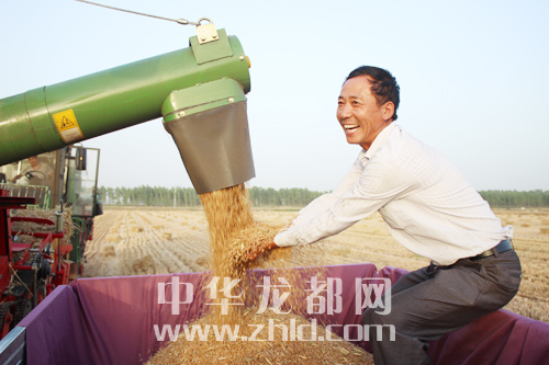 ??? ?眼看金燦燦的麥粒不斷從機(jī)倉(cāng)里流出,項(xiàng)城市一農(nóng)民的臉上露出了燦爛的笑容。為保證夏收順利進(jìn)行,項(xiàng)城市充分發(fā)揮大型農(nóng)業(yè)機(jī)械在麥?zhǔn)罩械淖饔茫瑺?zhēng)農(nóng)時(shí)、搶速度,確保小麥顆粒歸倉(cāng)?!。◤堄谰?攝)