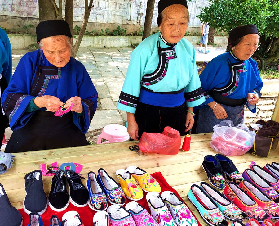 ????安順是屯堡文化之鄉(xiāng)。老孃嬢手中的翹翹鞋是大明遺風,相傳是為朱元璋的“大腳馬皇后”專門設計的。600年后的今天,它依然穿在屯堡婦女的腳上。