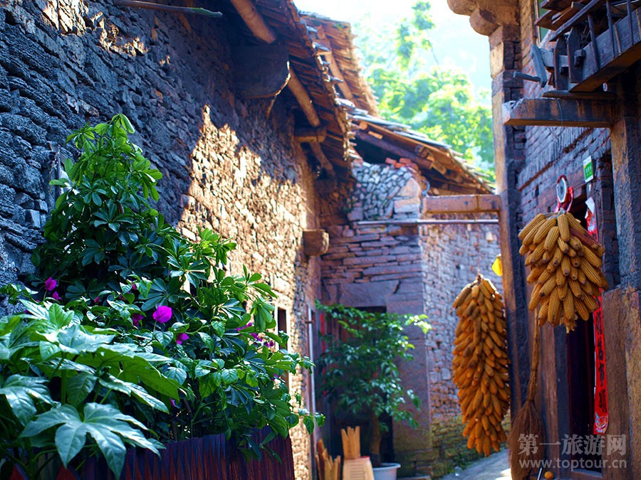 ????鮮花盛開的村莊。本寨屯堡雖然是一個有600年歷史的古村,卻到處鮮花盛開,生機盎然。
