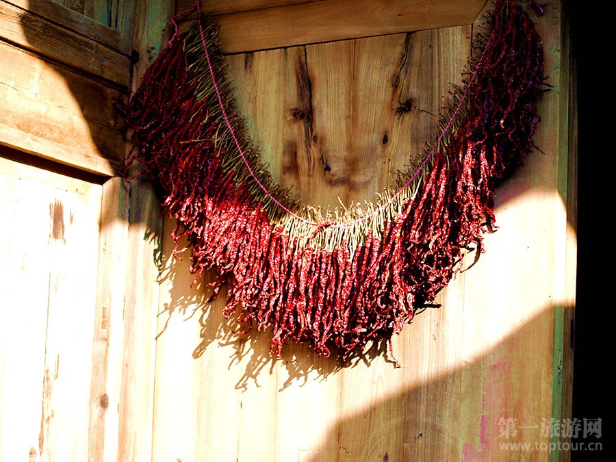 ????紅紅的辣椒墻上掛。這里是無辣不歡的貴州哦!