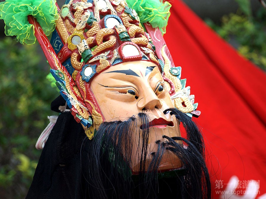 ????安順地戲面具。地戲,俗稱“跳神”,因演出不用戲臺和苗臺,就在村野曠地進行,故名地戲,為儺戲的一種,形成于明代初葉,是貴州省安順市屯堡人獨有的一種頭戴木刻假面的漢族民間戲劇,其由來與屯堡人的生存選擇有關。