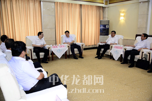 ????28日下午,徐光、劉繼標(biāo)等市領(lǐng)導(dǎo)親切會(huì)見中建七局黨委書記、董事長(zhǎng)陳穎一行。(記者 沈湛 攝)