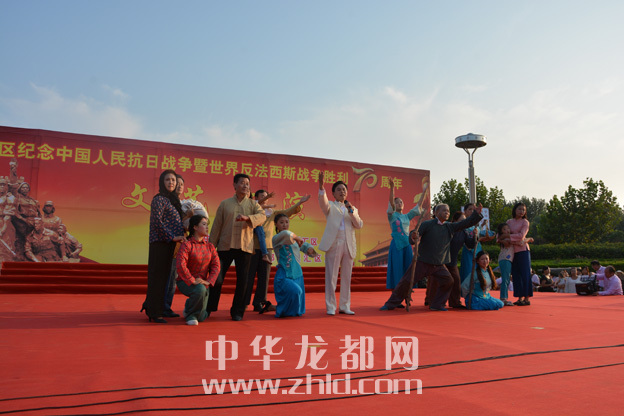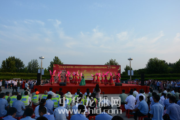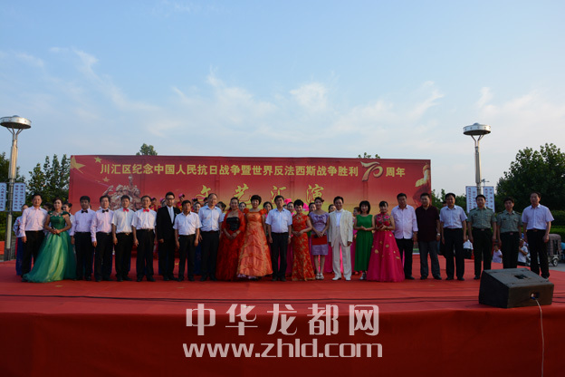 ????龍都網(wǎng)訊(記者 孫艷? 通訊員 理效明 崔海燕) 9月1日,行政新區(qū)廣場(chǎng)上人頭攢動(dòng),熱鬧非凡。由川匯區(qū)委宣傳部主辦、區(qū)文化局承辦的慶??箲?zhàn)勝利暨世界反法西斯戰(zhàn)爭(zhēng)勝利70周年文藝匯演在這里舉行。市委宣傳部常務(wù)副部長(zhǎng)陶韜及區(qū)領(lǐng)導(dǎo)郭志剛、陳朝棟、葉長(zhǎng)麗、張劍鋒、梁顯學(xué)、王琳、許四軍、李揚(yáng)、王崇山,區(qū)人武部部長(zhǎng)蘇運(yùn)才等與現(xiàn)場(chǎng)上千名群眾一起觀看了演出,共同追思中華民族抗戰(zhàn)時(shí)期那段血與火的歷史,紀(jì)念中國人民抗日戰(zhàn)爭(zhēng)和世界反法西斯戰(zhàn)爭(zhēng)勝利70周年。