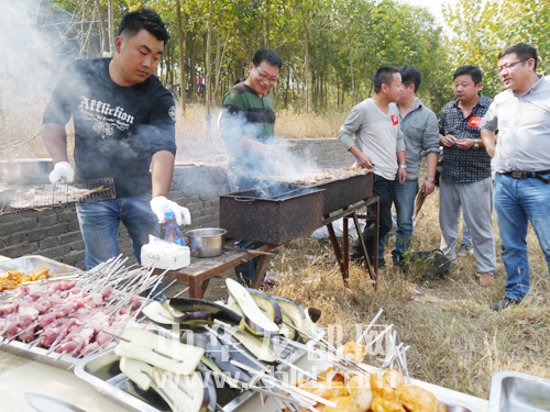 12時許,微友來到周口文昌生態(tài)園?;顒淤澲健逗梦鞑涂Х壬藤Q(mào)有限公司、戶外主題餐廳、人民公社大食堂早已準(zhǔn)備好肉類、蔬菜、水果、飲料等等,一場燒烤“盛裝登場”。
