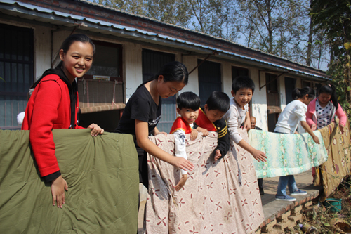 ????上圖:在九九重陽(yáng)節(jié)來(lái)臨之際,為弘揚(yáng)中華民族傳統(tǒng)美德,營(yíng)造尊老、敬老、愛(ài)老、助老的良好風(fēng)尚,項(xiàng)城市開(kāi)展了“溫暖重陽(yáng)·關(guān)愛(ài)老人”重陽(yáng)節(jié)慰問(wèn)活動(dòng),為敬老院的老人送去了慰問(wèn)物品,讓老人們感受到社會(huì)的關(guān)愛(ài)和溫暖。圖為該市中小學(xué)生在南頓鎮(zhèn)敬老院為老人們晾曬被褥。 張永久 攝