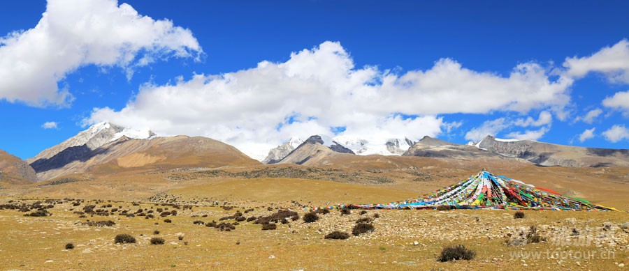 ????藏北草原又稱“羌塘草原”,是中國五大牧場之一,位于昆侖山脈、唐古拉山脈和岡底斯山脈之間,它不僅是野生動植物的天堂,同時也是一個具有豐厚沉積層的文化沃土。在那一望無際的草原上,牧民們在這里創(chuàng)造了夢幻迷離,色彩斑斕的游牧文化?,斈岫眩?jīng)幡、古塔隨處可見……,為蒼芒的大草原增添了幾分神秘的色彩,身臨其境,無不感到心曠神怡。(漁歌攝)