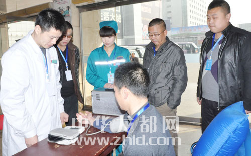 醫(yī)務人員為代表、委員們測量血壓。記者 王映 攝