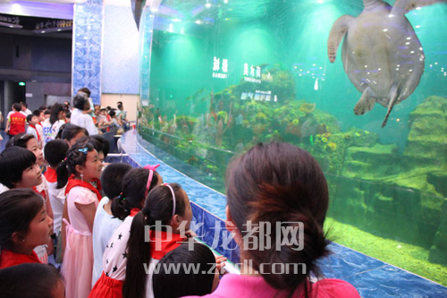 ????7月2日,在周口市義工協(xié)會開展的“繽紛夏日 快樂童年”公益活動中,商水黃寨半坡店小學(xué)的30名留守兒童與周口市區(qū)的30名兒童結(jié)成友誼對子。圖為當(dāng)日孩子們一起參觀海洋館。晚報記者 張燕 攝