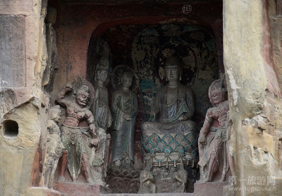 ????廣元千佛崖是四川境內(nèi)規(guī)模最大的石窟群,摩崖造像始于北魏時(shí)期,歷經(jīng)了近1500年,在高45米,南北長(zhǎng)200多米的峭壁上,布滿了造像龕窟,重重疊疊13層,密如蜂房。
