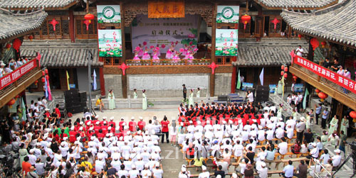 ????2016中國(guó)·淮陽(yáng)龍湖賞荷旅游月活動(dòng)除舉行開幕式(如圖)外,其間還將舉行周口市第三屆“龍湖杯”旅游形象大使選拔賽、“清風(fēng)荷韻”書畫名家作品展及“微腐敗治理”廉政征文活動(dòng)、首屆淮陽(yáng)沙窩西瓜節(jié)、國(guó)家濕地公園龍湖龍舟賽、千人共行“中華成人禮”及花卉盆景展等7項(xiàng)系列主題活動(dòng)。