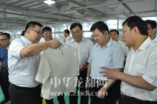 ????集中開工活動前,徐光、劉繼標等市領導在周口阿爾本制衣有限公司調研。 記者 王亞輝 攝