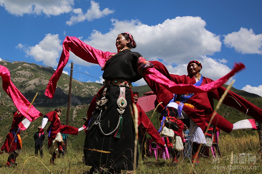 ????囊謙卓根瑪流傳于青海省玉樹藏族自治州囊謙縣,根據(jù)地理位置等可以分為囊謙南部林區(qū)卓根瑪和東部農(nóng)區(qū)卓根瑪,其風(fēng)格大同小異,南部林區(qū)卓根瑪分布在吉曲鄉(xiāng)、白扎鄉(xiāng),東部農(nóng)區(qū)卓根瑪分布在香達(dá)鎮(zhèn)、覺拉鄉(xiāng)。李鈺瑩/攝