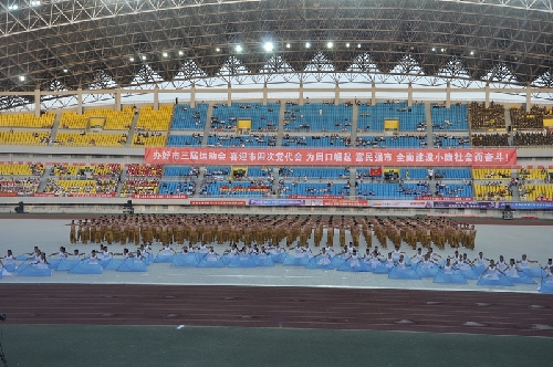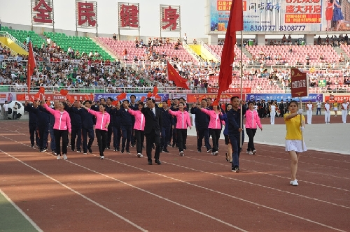 ????當(dāng)日16時,國旗方陣、會旗方陣、彩旗隊、裁判員、運動員依次入場,一個個意氣風(fēng)發(fā)的團隊引來現(xiàn)場觀眾陣陣掌聲和歡呼聲:周口川匯區(qū)代表團首先入場,他們步伐矯健,英姿勃發(fā);市委辦公室代表團精神抖擻,意氣風(fēng)發(fā);市委宣傳部代表團邁著矯健的步伐走向主席臺……