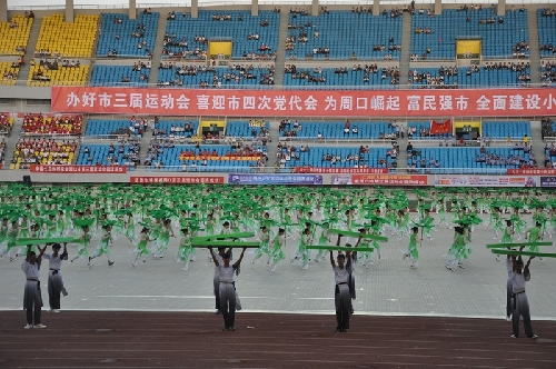 ????大型體育展示表演開始了,《印象周口》氣勢磅礴,來自周口幼兒師范學(xué)校和周口科技職業(yè)學(xué)院、沈丘縣教體局等單位的演員們披著鮮明的旗幟,激情奔跑在寬闊的體育場上,迎風(fēng)飄揚的旗幟讓整個會場變成了藍色海洋;周口職業(yè)技術(shù)學(xué)院衛(wèi)生學(xué)院與周口文昌中學(xué)的朗誦表演《荷韻悠長》吟誦豪邁,響徹會場;周口市自行車協(xié)會聯(lián)合川匯區(qū)、淮陽縣、太康縣等多個教體育一起表演的《崛起之路》更是體現(xiàn)了周口正在實現(xiàn)中國夢的征途上迅速崛起,書寫著新的精彩篇章……