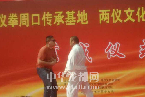 ????當日,在兩儀拳周口傳承基地揭牌和兩儀文化周口發(fā)展中心落成儀式上,兩儀拳傳承人分別做了兩儀拳展示和兩儀養(yǎng)生功夫表演。隨后,段保華的弟子高躍鑫請現場觀眾上臺體驗兩儀拳點穴。一位身材高大、體重近100公斤的彪形大漢應聲上臺。彪形大漢與高躍鑫交流后,表示已準備完畢。話音剛落,彪形大漢就被點中穴道,立即倒地。讓人驚奇的是,解穴后,彪形大漢隨即恢復正常。“以前聽說過兩儀拳的威力很大,沒想到會這么大?!北胄未鬂h說。