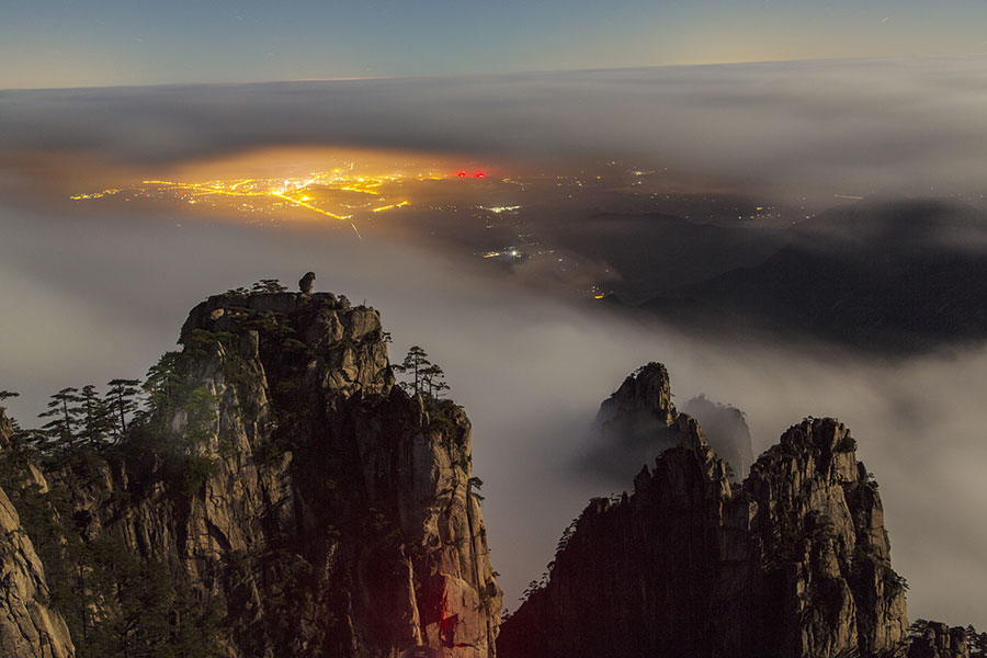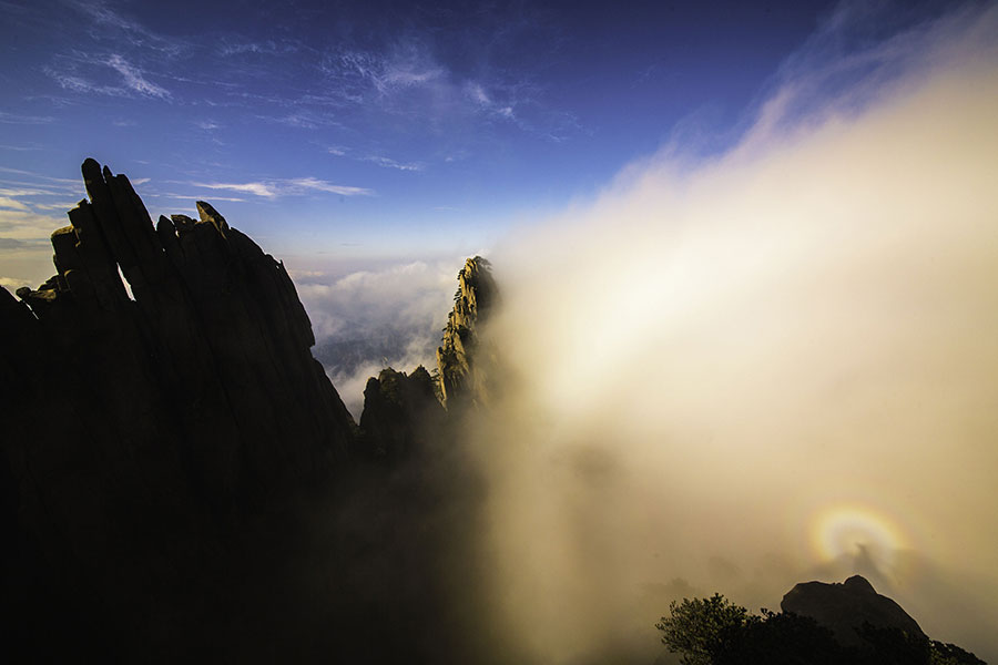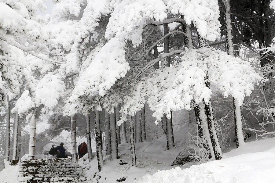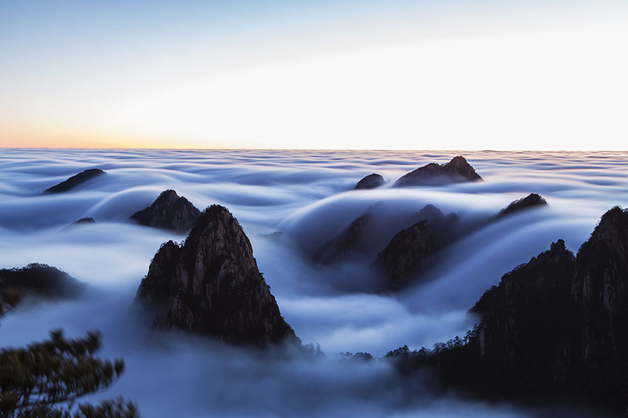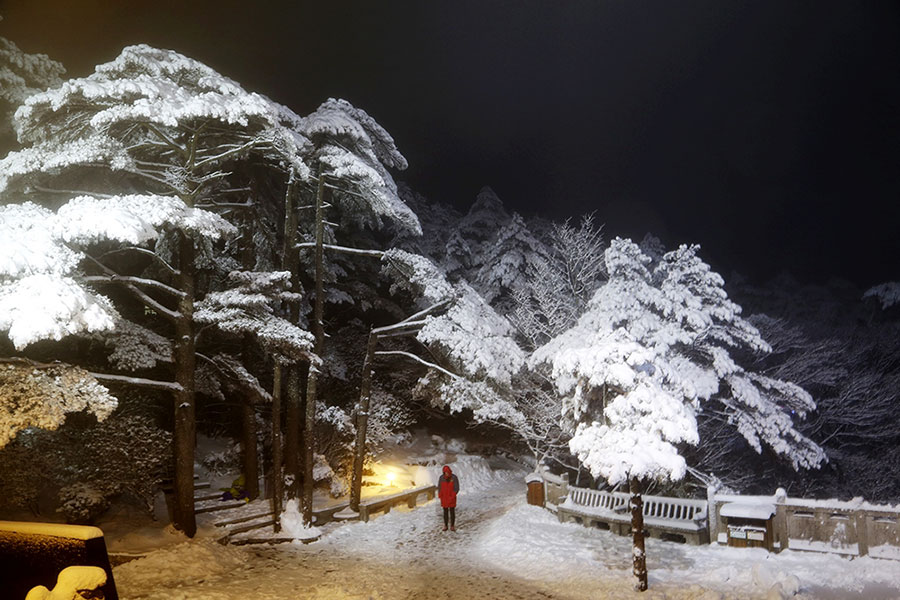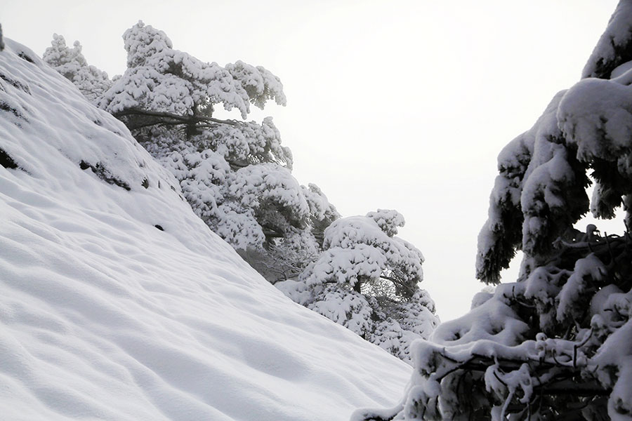 ????古語有云,“黃山四季皆勝景,唯有臘冬景更佳。冬天的黃山,滿樹滿枝的冰掛、霧凇、雨凇,猶如珠簾長垂;云海隱約在云端,時而聚集成群,越岫而出;時而飄蕩不定,宛如瀑布。方立華/攝