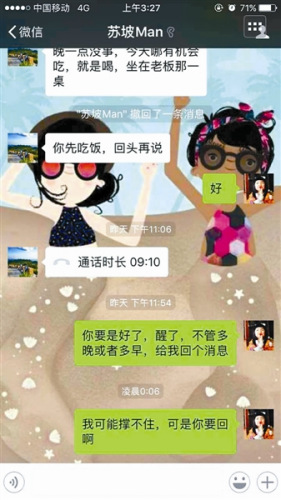 史國平與女友當(dāng)晚的微信聊天 研究生送醫(yī)后搶救無效 家屬從史的室友處了解到,史國平在22時許回到宿舍,回去的路上他還吐了一次。 23時06分,史國平在宿舍里跟女友琪琪用微信語音打了一通電話,通話9分鐘10秒。 23時54分,琪琪在微信里留言:“你要是好了,醒了,不管多晚或者多早,給我回個消息?!?6日零點零6分,琪琪睡覺前留言“我可能撐不住,可是你要回啊”。 這些留言史國平都沒看到。在掛掉電話后不久,他就倒在地上,室友見其異常后,立即聯(lián)系學(xué)校的老師,后來用滴滴打車將其送醫(yī)。史的舅舅韋先生說,學(xué)校方面“連120急救電話都沒打”。 15日23時27分,史國平被送往鎮(zhèn)江的三級甲等醫(yī)院江濱醫(yī)院搶救。 16日1時20分左右,醫(yī)院宣告史國平搶救無效身亡,診斷結(jié)論為猝死。當(dāng)韋先生和史國平的父母等人趕到醫(yī)院時,史國平已無生命體征。 “聚餐我們不反對。但是老師在場,怎么能讓學(xué)生喝酒?而且一喝喝這么多?!表f先生說。 史的母親韋女士說,史國平“平時在家只喝一點啤酒,白酒根本不喝”。 身亡研究生即將讀博士 史的老家在鎮(zhèn)江市丹陽縣農(nóng)村,距江蘇大學(xué)只有一小時車程,史國平學(xué)業(yè)不忙的時候,會在周末回家看望父母和爺爺奶奶。“他是獨苗,很孝順。很上進(jìn),也很爭氣。家里把他培養(yǎng)出來不容易。眼看他都要讀博士了,人沒了?!?/p> 在微信里,史國平的昵稱是“蘇坡man”,這是英語superman(意為“超人”)的諧音。從朋友圈里的文字,能看到他生前留下的痕跡。 9月29日,他說:“人生總是在糾結(jié)中度過,也是混蛋,也是無奈?!?/p> 10月13日,他轉(zhuǎn)發(fā)了一條業(yè)內(nèi)新聞《棄用內(nèi)燃機德國迎來全電動時間表》,并說“可以有用武之地了”。 在杭州參加過電氣科研領(lǐng)域的一次會議后,10月21日,他寫下一段話:“千里迢迢,前來交流。與院士影,與大牛談??蒲兄?,漫漫修遠(yuǎn)。杭州之行,回味良多。” 史國平的微信個人簽名為:“優(yōu)秀是第二等的選擇,第一等的選擇是自在?!?/p> 校方通報只字未提飲酒 1月17日晚,江蘇大學(xué)學(xué)生工作處向當(dāng)?shù)孛襟w發(fā)送一份《關(guān)于我校學(xué)生史國平猝死的情況通報》。 通報稱:“2017年1月15日晚,我校研究生史國平的導(dǎo)師邀請課題組同學(xué),一起在校外舉行寒假離校前的聚餐活動,聚餐活動至當(dāng)日晚20時30分左右。 “隨后,史國平與部分同學(xué)在餐廳聊天至22時15分左右,并與同學(xué)同行于22時50分走回自己宿舍?;氐剿奚岷?,史國平與其女朋友通話約8分鐘左右。之后,自己突然感覺不適,同室2名同學(xué)發(fā)現(xiàn)后,立即組織同學(xué)于23時27分送往(鎮(zhèn)江)江濱醫(yī)院(鎮(zhèn)江三級甲等綜合醫(yī)院之一)搶救,并向?qū)W校相關(guān)老師、領(lǐng)導(dǎo)報告。史國平所在學(xué)院的領(lǐng)導(dǎo)、導(dǎo)師及輔導(dǎo)員第一時間到達(dá)醫(yī)院,并要求醫(yī)院全力搶救。輔導(dǎo)員了解情況后,及時通知史國平父母,請其盡快趕來醫(yī)院。搶救至次日凌晨1時20分左右,醫(yī)院宣告史國平搶救無效身亡,診斷結(jié)論為猝死?!?/p> 北青報記者注意到,江蘇大學(xué)的這份通報只字未提“喝酒”一事。 18日上午,北青報記者打通江蘇大學(xué)宣傳部部長辦公室電話,一名值班老師表示,事情還在處理。北青報記者詢問:是否調(diào)查喝酒情況?相關(guān)老師有無責(zé)任?該名老師稱“不是你說的那樣”,北青報記者請校方對此作出回應(yīng),該老師稱“不了解情況”,隨后掛斷電話。 18日晚,史國平的導(dǎo)師朱教授給北青報記者打來電話,介紹了當(dāng)晚飯桌上的情況。朱教授稱,在飯桌上,他并沒有給學(xué)生勸過酒,因為飯桌上串來串去,他確實不知道當(dāng)時史國平喝了多少。朱教授說:“我自己有胃潰瘍,不喝白酒,只喝了一點黃酒。我不可能勸別人喝?!?/p> 朱教授稱,從當(dāng)晚飯局上的情況看,史國平比較興奮,目前還不清楚導(dǎo)致他死亡的真正原因。“史國平是我的好學(xué)生,因為他品學(xué)兼優(yōu),我才推薦保送博士生的。他的父母知道我對他有多好。這是我破天荒第一次遇到這樣的事。最好的學(xué)生失去了,我的心情也不好?!?/p> 截至發(fā)稿前,史國平的家屬表示,目前校方已與他們就善后事宜初步達(dá)成一致。 |