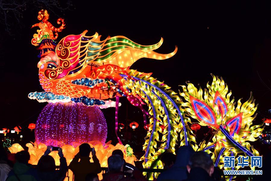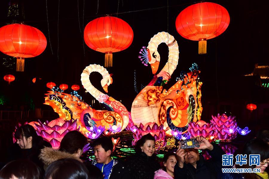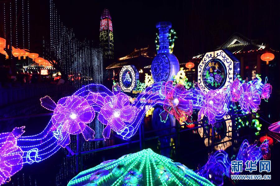 ????濟(jì)南趵突泉公園內(nèi)的迎春花燈(2月8日攝)。
