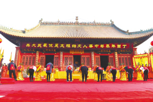 ????本報(bào)訊 2月27日,農(nóng)歷“二月二”。當(dāng)天上午,淮陽太昊陵龍旗飄揚(yáng),香燭縈繞,由當(dāng)?shù)孛耖g、工商界組織的“丁酉年全球華人恭祭中華人文始祖太昊伏羲典禮”在這里隆重舉行(圖一、圖二)。同時(shí),來自13個(gè)省的“國(guó)字號(hào)”非遺項(xiàng)目展演活動(dòng)(圖三、圖四、圖五、圖六、圖七)也在羲皇文化廣場(chǎng)拉開帷幕。一年一度的淮陽傳統(tǒng)古廟會(huì),又一次在這個(gè)春天如約而至。