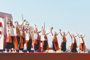 ????“二月二”當(dāng)天,除了恭祭伏羲典禮外,第八屆中原古韻——中國(guó)(淮陽)非遺展演依然是今年朝祖會(huì)期間最大的亮點(diǎn)。周口晚報(bào)記者在展演現(xiàn)場(chǎng)看到,浙江黃沙獅子、云南彝族跳菜、貴州侗族大歌、遼寧海城高蹺、內(nèi)蒙古馬頭琴合奏……一個(gè)個(gè)獨(dú)具地方特色、盡顯古風(fēng)神韻的世界級(jí)、國(guó)字號(hào)非遺項(xiàng)目的閃亮登場(chǎng),令人大飽眼福。