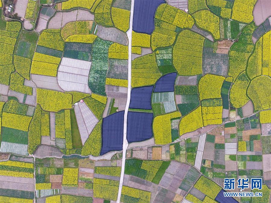 ????這是3月5日航拍的貴州省遵義市余慶縣白泥鎮(zhèn)滿溪村的農(nóng)田。