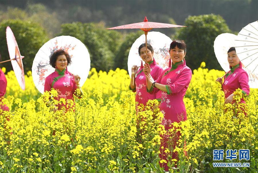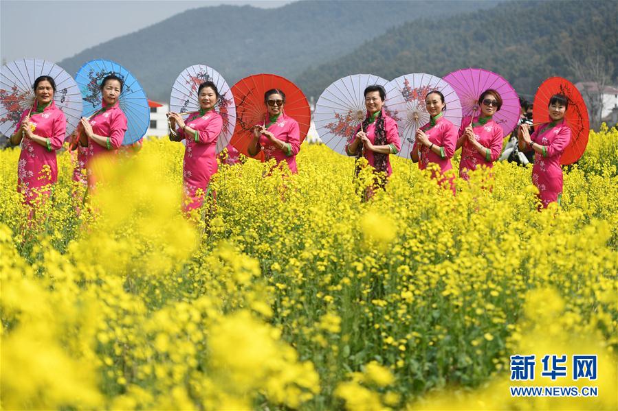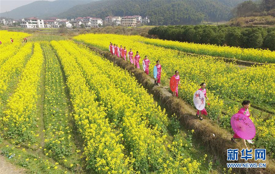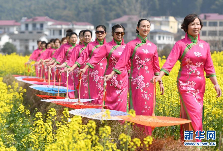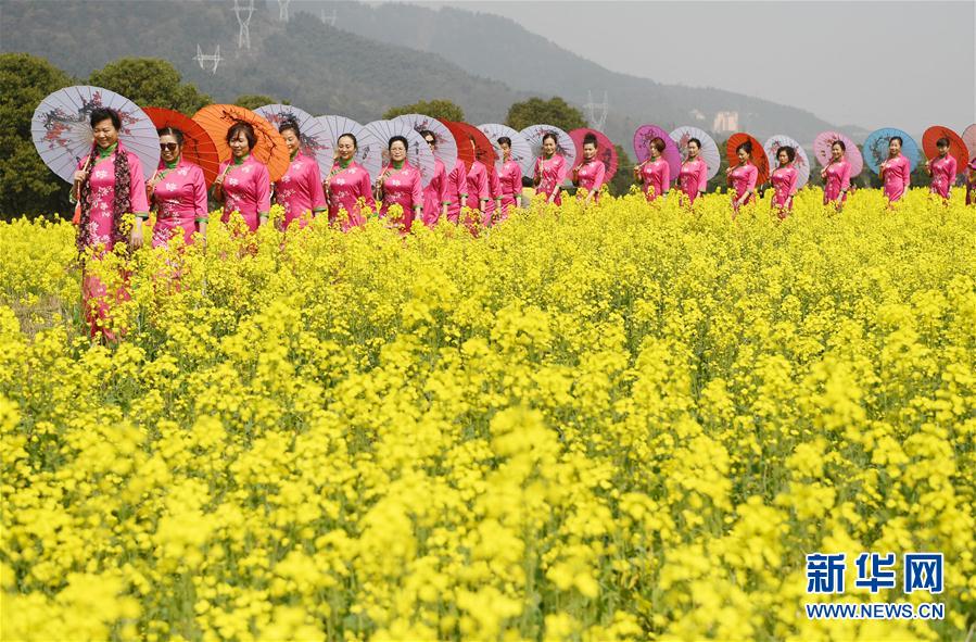 ????3月8日,旗袍隊(duì)在油菜花田中表演旗袍秀。當(dāng)日是“三八”婦女節(jié)。一支老年旗袍隊(duì)在江西省南昌市灣里區(qū)太平鎮(zhèn)獅子峰景區(qū)的油菜花田里,上演一場(chǎng)別開(kāi)生面的“花田旗袍秀”,吸引眾多前來(lái)賞花的游人駐足觀看。新華社記者 萬(wàn)象 攝