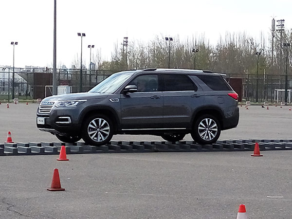 第三個項(xiàng)目是緊急避讓,體驗(yàn)車輛抓地性;接下來的側(cè)面斜坡項(xiàng)目長安CS95順利通過,車身并未有異響。