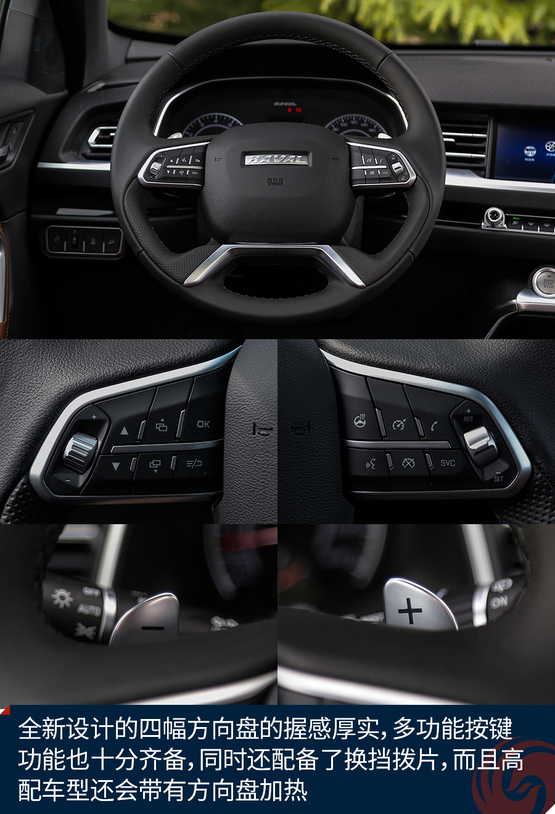 一切以駕駛員為中心的設(shè)計(jì)理念值得肯定,微微朝向駕駛員的中控設(shè)計(jì),全新的電子換擋桿以及多媒體控制旋鈕都給我留下了很深的印象,當(dāng)然了全景天窗進(jìn)一步增加了車內(nèi)空間的開揚(yáng)感,全新設(shè)計(jì)的四幅方向盤的握感厚實(shí),多功能按鍵功能也十分齊備??傊?,全新哈弗H6的內(nèi)飾讓我們看到了不一樣的自主設(shè)計(jì),很用心也很有設(shè)計(jì)感,沒有了雜亂無章,相反,這樣的設(shè)計(jì)會讓人很愿意和汽車獨(dú)處,如果真要挑出一些不足的話,那就是全液晶只有頂配車型才有,如果能夠作為全系標(biāo)配就好了。