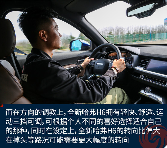 而在方向的調(diào)教上,全新哈弗H6擁有輕快、舒適、運(yùn)動三擋可調(diào),可根據(jù)個(gè)人不同的喜好選擇適合自己的那種,同時(shí)在設(shè)定上,全新哈弗H6的轉(zhuǎn)向比偏大,在掉頭或者駛?cè)胍恍┍容^刁鉆的小路時(shí)可能需要更大幅度的轉(zhuǎn)向。