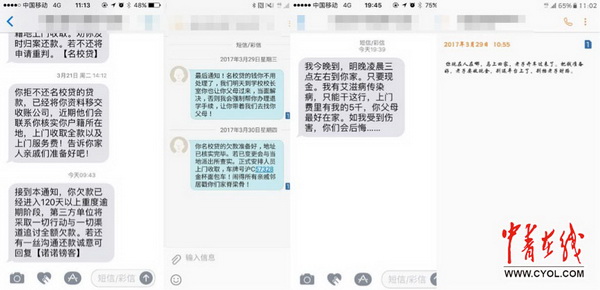 ????“我們明天到學(xué)校校長(zhǎng)室,你也讓你父母過(guò)來(lái)當(dāng)面解決,否則我會(huì)強(qiáng)制幫你辦理退學(xué)手續(xù)!”“我今晚到,明天凌晨3點(diǎn)到你家,只要現(xiàn)金,我有艾滋病……” ????直到家長(zhǎng)接到此類催債電話和短信,南京航空航天大學(xué)的數(shù)十名學(xué)生才意識(shí)到自己欠了高額債務(wù),有人用他們的身份信息在網(wǎng)貸平臺(tái)上貸款近百萬(wàn)元逾期未還。 ????所有人都將矛頭指向了王曉亮,曾任南京航空航天大學(xué)機(jī)電學(xué)院的學(xué)生輔導(dǎo)員,2016年碩士畢業(yè)于該校。 ????以“幫朋友辦卡”或“在校生領(lǐng)取創(chuàng)業(yè)補(bǔ)貼”為由騙取信息 ????一些受騙學(xué)生在要求匿名的前提下接受了中國(guó)青年報(bào)·中青在線記者采訪。據(jù)他們反映,受騙者有王曉亮的同學(xué),有他做輔導(dǎo)員時(shí)所帶的學(xué)生,甚至有他前妻(同為該校輔導(dǎo)員)所帶的學(xué)生。 ????在2015年下半年至2016年上半年,這些人分別被王曉亮以“幫朋友辦卡”或“在校生領(lǐng)取創(chuàng)業(yè)補(bǔ)貼”為由騙取了儲(chǔ)蓄卡、密碼,以及詳盡的個(gè)人身份信息。他們表示,對(duì)網(wǎng)貸“完全不知情”,因?yàn)橥鯐粤劣兄档眯刨嚨妮o導(dǎo)員身份才輕信了他。 ????“經(jīng)了解,學(xué)生反映的情況基本屬實(shí)?!?月7日15時(shí),南京航空航天大學(xué)法人微博發(fā)布了一份《關(guān)于我校學(xué)生疑遭騙貸情況的通報(bào)》。王曉亮在這份通報(bào)中被稱為“王某某”。校方通報(bào)稱今年2月他已失聯(lián)。 ????“學(xué)校就該事件和公安機(jī)關(guān)多次溝通,警方已經(jīng)就此開(kāi)展調(diào)查?!蓖▓?bào)中稱。 ????通報(bào)提到,該校自2017年2月中旬起陸續(xù)接到學(xué)生關(guān)于此事的反映,成立了專門的工作組。 ????該校還確認(rèn),王曉亮于2011年9月至2013年6月?lián)卧撔]o導(dǎo)員,2013年9月至2016年4月為該校碩士研究生,其中,2013年9月至2014年6月任兼職輔導(dǎo)員,2016年4月畢業(yè)離校?!?017年2月學(xué)校調(diào)查時(shí)已處于失聯(lián)狀態(tài)?!?/p> ????4月7日18時(shí),一名學(xué)生接到了失聯(lián)已久的王曉亮打來(lái)的電話。他聲稱自己人在南京,已與警方取得聯(lián)系。 ????中國(guó)青年報(bào)·中青在線記者獲得的雙方通話錄音顯示,王曉亮在電話中表示“愧對(duì)大家”,“請(qǐng)求大家原諒”,并表示自己會(huì)全力還款?!拔乙膊幌虢忉屖裁矗吘刮易鲥e(cuò)了,希望你們給我一點(diǎn)時(shí)間?!彼f(shuō)。 ????據(jù)他描述,目前仍有70多萬(wàn)元欠款,他會(huì)想辦法一次性還清。但他也表示,“說(shuō)實(shí)話,我現(xiàn)在也不知道能不能全部解決錢的事,但我會(huì)盡量去解決,和大家一起面對(duì)。” ????他還稱,自己“不會(huì)躲著大家”,會(huì)盡最大努力去解決問(wèn)題,幫助同學(xué)們消除影響。 ????記者致電王曉亮?xí)r,對(duì)方已關(guān)機(jī)。 ????“優(yōu)秀學(xué)生工作者”的面目 ????在南航,王曉亮曾獲得過(guò)優(yōu)秀共產(chǎn)黨員、優(yōu)秀學(xué)生工作者、首屆南航輔導(dǎo)員技能大賽一等獎(jiǎng)等榮譽(yù)。 ????在同學(xué)眼里,王曉亮可信能干、家境很好,他穿著講究,還有兩輛名車。 ????小A是王曉亮的研究生同學(xué)。據(jù)他回憶,2015年下半年的一天,王曉亮稱自己的一個(gè)創(chuàng)業(yè)項(xiàng)目正在申請(qǐng)南京市的優(yōu)秀創(chuàng)業(yè)補(bǔ)貼,“他說(shuō)錢已經(jīng)發(fā)了,但因?yàn)轫?xiàng)目?jī)?nèi)的人都已經(jīng)畢業(yè)了,領(lǐng)補(bǔ)貼必須是在校生身份,他想借我們頂個(gè)人頭領(lǐng)補(bǔ)貼?!?/p> ????王曉亮還以同樣的理由向該課題組的11名同學(xué)求助。由于王曉亮第一次的創(chuàng)業(yè)項(xiàng)目獲得過(guò)創(chuàng)業(yè)補(bǔ)貼,他們相信了他的說(shuō)法,應(yīng)王曉亮要求給了自己的儲(chǔ)蓄卡、密碼及詳盡的個(gè)人信息,并配合他面對(duì)電腦做了人臉識(shí)別。 ????經(jīng)管學(xué)院學(xué)生小B的輔導(dǎo)員是劉旭,而劉旭是王曉亮的前妻。小B在王曉亮的創(chuàng)業(yè)公司內(nèi)兼職過(guò)。他也收到了王曉亮“領(lǐng)取創(chuàng)業(yè)補(bǔ)貼需要頂人頭”的請(qǐng)求。因?yàn)橥鯐粤梁蛣⑿穸际禽o導(dǎo)員,小B答應(yīng)了。后來(lái)小B把此事告訴了劉旭,劉旭微信回復(fù):“謝謝你對(duì)他的支持!” ????經(jīng)管學(xué)院學(xué)生小C大一時(shí)曾在王曉亮的創(chuàng)業(yè)團(tuán)隊(duì)中兼職。王曉亮找她求助的理由是,“在銀行工作的同學(xué)需要辦卡沖業(yè)績(jī)”,請(qǐng)她幫忙辦卡,她“不好意思拒絕”,也被王曉亮帶著去學(xué)校附近的建行辦理了儲(chǔ)蓄卡,辦完后給了王曉亮儲(chǔ)蓄卡和密碼及做人臉識(shí)別。 ????這些受騙學(xué)生統(tǒng)計(jì)出有過(guò)類似遭遇的學(xué)生共45名。他們都給了王曉亮儲(chǔ)蓄卡、密碼以及非常詳盡的個(gè)人信息,包括身份證號(hào)、宿舍地址、父母姓名電話等,并配合王曉亮對(duì)著電腦做了人臉識(shí)別。不同的是,有的是被王曉亮帶去辦理銀行卡,有的直接給了他自己不常用的卡。因?yàn)槭莾?chǔ)蓄卡,很多同學(xué)沒(méi)有放在心上。部分學(xué)生表示收到過(guò)王曉亮200元的