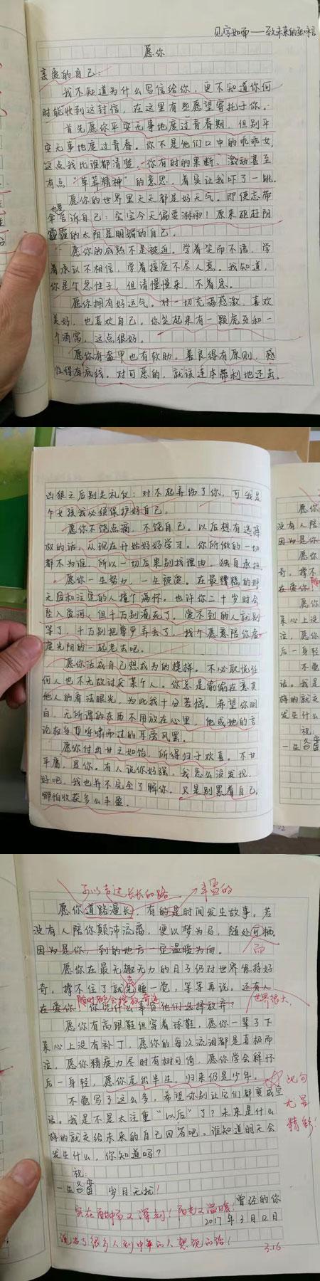 ????一摞作文本擺在辦公桌上,看到《愿你》時(shí),北京四中語文教師王允忍不住畫了很多條紅色波浪線,“每一句都是那么舒暢,就像泉水在心間流淌?!彼鹗謾C(jī),像往常一樣,拍下文章,發(fā)到了朋友圈。 ????“愿你付出甘之如飴,所得歸于歡喜?!?/p> ????“愿你的流淚每次都是喜極而泣,愿你精疲力盡時(shí)有樹可倚?!?/p> ????“愿你的世界里天天都是好天氣。即便忘了帶傘也要告訴自己:寶寶今天偏要淋雨!原來驅(qū)趕陰霾的太陽是明媚的自己?!?/p> ????“愿你走出半生,歸來仍是少年。” ????…… ???? ????張?jiān)佈缘淖魑摹对改恪?/p> ????一個(gè)月前,北京四中初二語文組圍繞主題教學(xué)“人生導(dǎo)航”,借鑒書信朗讀節(jié)目“見字如面”的形式,讓學(xué)生寫一封信。 ????學(xué)生張?jiān)佈缘摹对改恪吩谂笥讶Φ玫搅撕芏噘澴u(yù)。幾天后,有人把文章貼到了微博@北京人不知道的北京事,人民網(wǎng)轉(zhuǎn)發(fā)后,閱讀量很快超過800萬。隨后,數(shù)十個(gè)大V開始關(guān)注,評(píng)論里,也逐漸出現(xiàn)了褒貶不一的評(píng)價(jià)。朋友們陸續(xù)給王允發(fā)來網(wǎng)上的截圖,她才感覺“這事好像鬧大了”。 ????中國青年報(bào)·中青在線記者在學(xué)校見到了這位語文教師,“文章就像孩子模仿父母口吻寫給自己的期望,說出了很多中年人想說的話。翻到最后,才發(fā)現(xiàn)是她寫給未來的自己的?!蓖踉收f,這篇文章讓很多人再度重溫青春,能這么火,她也很意外。 ????一年前,王允開始任教張?jiān)佈运诘陌嗉?jí)。為調(diào)動(dòng)孩子們的寫作熱情,她玩起了自媒體,教室里懸掛的“晴耕雨讀”四個(gè)字成為微信公眾號(hào)的名稱。公眾號(hào)的內(nèi)容多是學(xué)生們的日?!改负秃⒆右浴段覀冐怼窞轭}一起完成的文章;學(xué)生們的配樂朗誦、詩歌仿作、古文改寫;一位學(xué)生把《送東陽馬生序》作者宋濂的經(jīng)歷改寫成歌詞并配樂演唱;期中考試前,各科大神把筆記發(fā)了上去,一位學(xué)霸用漫畫畫出了英語復(fù)習(xí)秘籍。 ????起初,微信公眾號(hào)上的內(nèi)容,王允會(huì)逐字逐句修改,之后逐漸讓學(xué)生去參與,培養(yǎng)了一個(gè)五人小編團(tuán)隊(duì)。漸漸地,張?jiān)佈孕薷倪^的內(nèi)容,開始充滿了情感和節(jié)奏。原本一篇中規(guī)中矩的文章結(jié)尾,張?jiān)佈詾槠渥⑷肓恕吧保?詩讓我們變得感性而柔軟,善良而有內(nèi)蘊(yùn)。激昂熱烈也好,沉郁迷離也罷,愿我們,都活成一首首的深情。 ????文章走紅之后,北京音樂廣播電臺(tái)聯(lián)系學(xué)校,挑了包括《愿你》在內(nèi)的4封學(xué)生信件作為廣播素材。臨近深夜11點(diǎn),家長和學(xué)生準(zhǔn)時(shí)守在電臺(tái)前收聽。 ????王允覺得,《愿你》的偶然走紅,也與對(duì)學(xué)生寫作的培養(yǎng)有關(guān)。 ????閱讀是學(xué)校里永遠(yuǎn)繞不開的話題。最近的閱讀季,校園各個(gè)角落都掛著被剪成了風(fēng)箏狀的紙張,上面印著文學(xué)作品,統(tǒng)一用紅色絲帶串起;教師們仿照央視節(jié)目,舉辦了詩詞大會(huì)比賽;校門口的櫥窗,貼著學(xué)生給詩歌作的畫——一個(gè)女孩站在泉水旁凝望,畫風(fēng)寧靜幽冷——這是張?jiān)佈詫?duì)林徽因一些作品的理解。 ????教書這些年,王允第一次和學(xué)生成為輿論焦點(diǎn)。文章剛火起來的時(shí)候,她和張?jiān)佈蚤_玩笑:“你現(xiàn)在成大網(wǎng)紅啦?!?/p> ????隨后,有網(wǎng)友指出,文章中的句子有模仿痕跡,其中,被傳閱最廣的那句——“愿你走出半生,歸來仍是少年”與一本書名雷同。批閱作文時(shí),王允也發(fā)現(xiàn)這句并非張?jiān)佈栽瓌?chuàng),“但是她記住了這句話,并運(yùn)用到自己的文章中,這句話點(diǎn)亮整篇文章,這是值得鼓勵(lì)的。” ????平時(shí),王允會(huì)有意讓學(xué)生們仿寫經(jīng)典作品。一位學(xué)生讀了《星星和蒲公英》后,寫了首“四中與籃球”——藍(lán)色的海洋搖旗吶喊,就像狂風(fēng)在空中呼嘯。球員的經(jīng)歷,我們看不見,看不見它卻在那里;張?jiān)佈院屯瑢W(xué)根據(jù)《你是人間的四月天》,完成了詩歌《我說你是盛夏的香樟》《你是人間的焰火》《你是六月的雨》。 ????半個(gè)月以來,王允思考了很多,“原創(chuàng)的確可以自由自在地表達(dá)思想,但在成文時(shí),有表達(dá)不到位的地方,適度借鑒模仿,可以更有章法地呈現(xiàn)。一篇好文章,最關(guān)鍵的是看作者想要表達(dá)的思想內(nèi)核是否精彩?!?/p> ????對(duì)于這篇文章,張?jiān)佈缘募胰艘步o出了正反兩方面評(píng)價(jià)。父親直言“創(chuàng)造力不夠”,但安慰她,早期學(xué)生作品都只不過是智力訓(xùn)練,經(jīng)由模仿和吸收,逐漸學(xué)會(huì)把文意準(zhǔn)確地表達(dá)出來。 ????張?jiān)佈哉f自己讀的書與同齡人相比并不多,但她對(duì)文字很熱愛、敏感。初一時(shí),她在全國微書評(píng)大賽中獲獎(jiǎng)。那是一篇《小王子》的讀后感,其中一句引發(fā)了很多人共鳴:我們不能保持永遠(yuǎn),但我們可以渴望永遠(yuǎn),永遠(yuǎn)渴望著,自己最初的模樣。對(duì)于“背誦好詞好句串成雞湯文集錦”的評(píng)價(jià),張?jiān)佈砸灿羞^思考。五六年級(jí)時(shí),她喜歡讀青春類小說,風(fēng)格清新,詞藻華麗。父母擔(dān)心她只會(huì)寫那種多愁