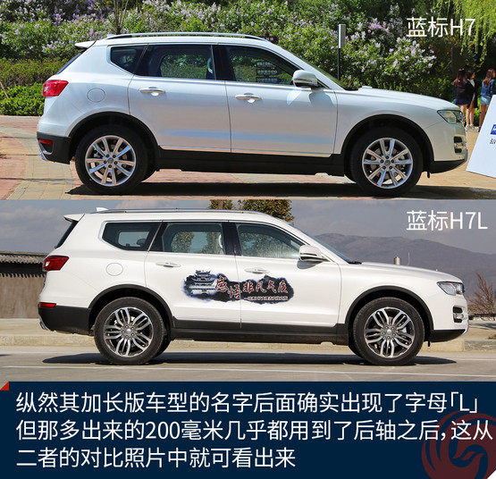 提到加長,我腦子中的第一反應(yīng)是軸距加長幾十甚至上百毫米,然而,哈弗藍標H7L并不是這樣??v然其加長版車型的名字后面確實出現(xiàn)了字母「L」,但那多出來的200毫米幾乎都用到了后軸之后,這從二者的對比照片中就可看出來。