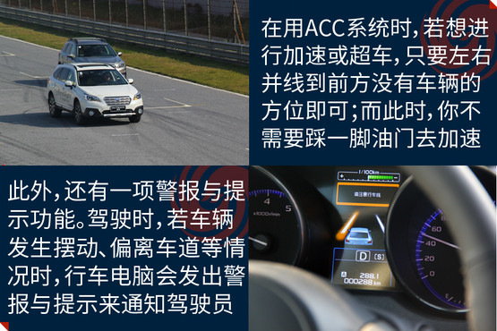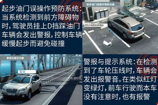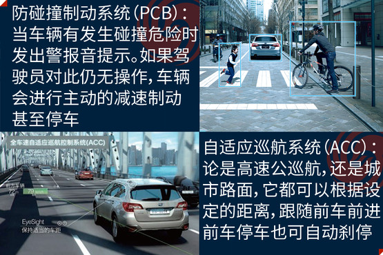 EyeSight駕駛輔助系統(tǒng)是避免事故發(fā)生,此次在中國市場亮相是它的第三代產(chǎn)品,其主要亮點(diǎn)是通過兩個(gè)模擬人眼的立體攝像頭,來監(jiān)控距離車輛前方100米以內(nèi),高度在1米以上的人、車輛和物體,以減少傷害為目的的駕駛輔助系統(tǒng);除了距離以外,還可以對方向、高度大小等指標(biāo)進(jìn)行識(shí)別。它的主要功能分為四大類,分別是防碰撞制動(dòng)系統(tǒng)(PCB)、車速自適應(yīng)巡航控制系統(tǒng)(ACC)、起步油門誤操作預(yù)防系統(tǒng)和警報(bào)與提示系統(tǒng)。