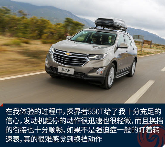 在我體驗(yàn)的過程中,探界者550T給了我十分充足的信心,發(fā)動(dòng)機(jī)起停的動(dòng)作很迅速也很輕微,而且換擋的銜接也十分順暢,如果不是強(qiáng)迫癥一般的盯著轉(zhuǎn)速表,真的很難感覺到換擋動(dòng)作。