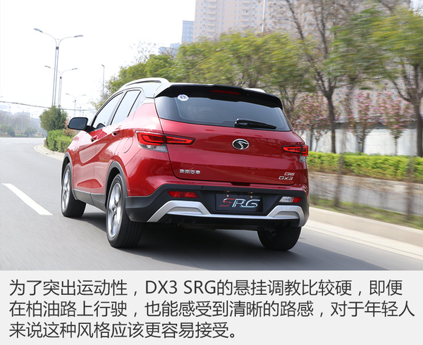 東南DX3 SRG很明顯是為85后年輕群體打造的一款車,雖然它的最終用戶不一定是年輕人,但不可否認(rèn)東南DX3 SRG是同級(jí)中顏值頗高的一員,無(wú)論從哪個(gè)角度都足夠讓人驚艷;試駕活動(dòng)中全新的動(dòng)力組合非常出色,尤其是底盤調(diào)教給我留下了深刻的印象,這對(duì)于年輕消費(fèi)者來(lái)說(shuō)無(wú)疑是個(gè)利好的期待,作為10萬(wàn)元級(jí)別SUV,DX3 SRG有很強(qiáng)的實(shí)力與競(jìng)品爭(zhēng)奪市場(chǎng)。(圖/文 張嘉文)