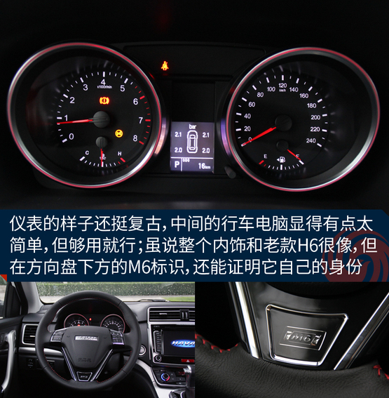 ????????車上的機(jī)械液壓助力轉(zhuǎn)向的力度有點(diǎn)沉,這點(diǎn)和老款H6特別的相似,長時(shí)間在低速行駛或者移庫挪車的時(shí)候挺廢胳膊,大老爺們長時(shí)間開都覺得酸,更何況瘦小的小女孩呢!所以從這點(diǎn)看出,M6會(huì)從配置以及更低的價(jià)格來吸引消費(fèi)者,至于想這些其他的問題,大伙就別太吹毛求疵了,畢竟魚和熊掌不可兼得。