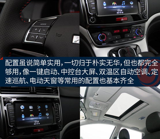 ????????內(nèi)飾相對的看著沒那么大的驚喜,主要是它與老款哈弗H6車型的樣子基本保持一致,包括橫向空調(diào)出風(fēng)口、大尺寸中控屏幕以及換擋桿造型。配置方面,該車配備了多功能真皮方向盤、防夾電動(dòng)天窗、一鍵啟動(dòng)、雙溫區(qū)自動(dòng)恒溫空調(diào)、自動(dòng)雨刷、自動(dòng)大燈、主駕駛電動(dòng)座椅等實(shí)用裝備,對于不到10萬的家用車來說太夠用了,沒必要再弄那些花里胡哨的東西,比單純?yōu)榱俗非筻孱^和性價(jià)比要好,總結(jié)一句話就是:一切簡單就好!