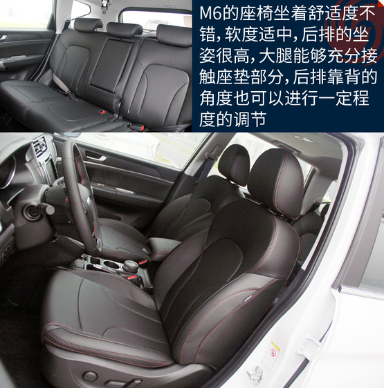 ????????M6的空間表現(xiàn)在同級別車型當(dāng)中屬于優(yōu)勢地位,主要原因就是內(nèi)部空間和H6基本沒區(qū)別。特別得說新車的座椅,很柔軟、舒服,包裹性也不錯(cuò)。不過坐姿真的有點(diǎn)高,前排座椅調(diào)到最低后還是能看到整個(gè)機(jī)艙蓋,這樣倒是為了安全性;后排的座椅還要更高一些,有點(diǎn)類似劇院式的設(shè)計(jì),給后排乘客減少了壓抑感。
