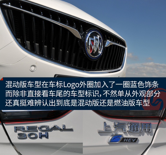 ????????仔細(xì)對比才會發(fā)現(xiàn),混動版車型在車標(biāo)Logo外圈加入了一圈藍色飾條,而除非直接看車尾的車型標(biāo)識,不然單從外觀部分還真挺難辨認(rèn)出到底是混動版還是燃油版車型。