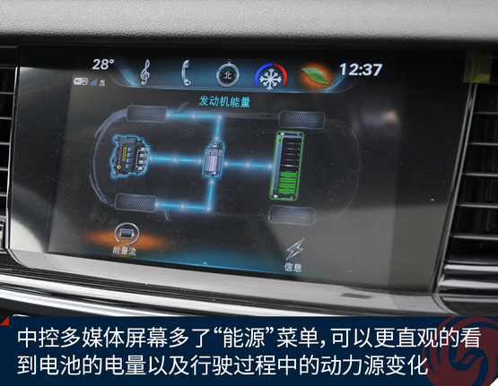 ????????中控多媒體屏幕多了“能源”菜單,點進去可以更直觀的看到電池的電量以及行駛過程中的動力源變化。