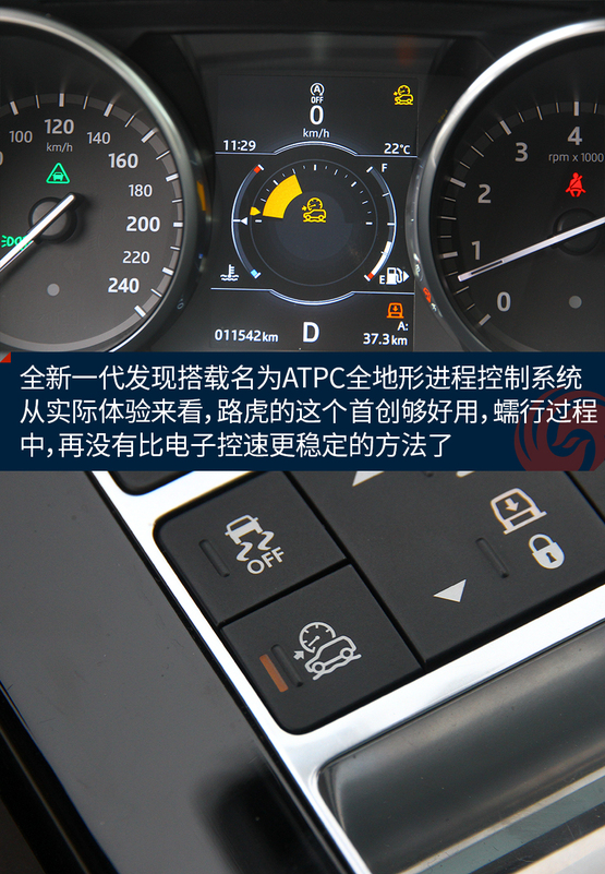 全新一代發(fā)現(xiàn)搭載名為ATPC全地形進(jìn)程控制系統(tǒng),簡單可以理解為這套系統(tǒng)將一般道路上的定速巡航概念移植到了越野功能上,設(shè)定好預(yù)計速度,車輛便可相對應(yīng)地自動調(diào)整油門或剎車。