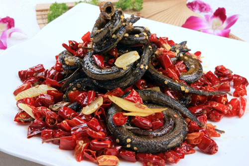 1、選料考究,做工精細。鱔魚必須選擇天然生黃鱔,顏色呈黑褐色,辣椒以紅色為宜。做法要經(jīng)過泡、燙、炸、煸炒等工序。