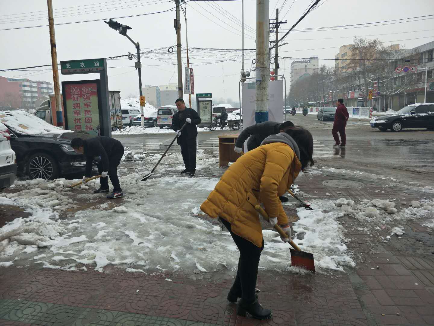 一呼百應(yīng)。該縣縣直各單位、新城、洺南、洺北辦事處,城郊鄉(xiāng)、工業(yè)區(qū)接到通知后,立組織機(jī)關(guān)企事業(yè)單位干部職工上街掃雪、鏟雪,做到本單位出入口、文明城創(chuàng)建責(zé)任區(qū)路面基本無(wú)積冰、殘雪。各辦事處發(fā)揮屬地管理作用,重點(diǎn)發(fā)動(dòng)新華路、迎賓大道、世紀(jì)大道、人民路、育新路、文化路、交通路、科技大道等沿街單位及商戶主動(dòng)落實(shí)“門前三包”,清掃人行道積雪。城管部門從1月5日開始一直未停歇,前兩天雖然雪花飄舞,他們冒雪出動(dòng)大型車輛、組織專業(yè)隊(duì)伍,最大程度的保障了主次干道無(wú)積雪、通行順暢。今日,縣城管局按照縣委、縣政府的指示精神,正夜以繼日加大城區(qū)主路行車道路面的清掃力度。在清掃的同時(shí),出動(dòng)各種運(yùn)輸車輛,協(xié)助各單位及時(shí)把中心城區(qū)冰雪清運(yùn)、規(guī)范堆放,確保行人和車輛正常安全通行。