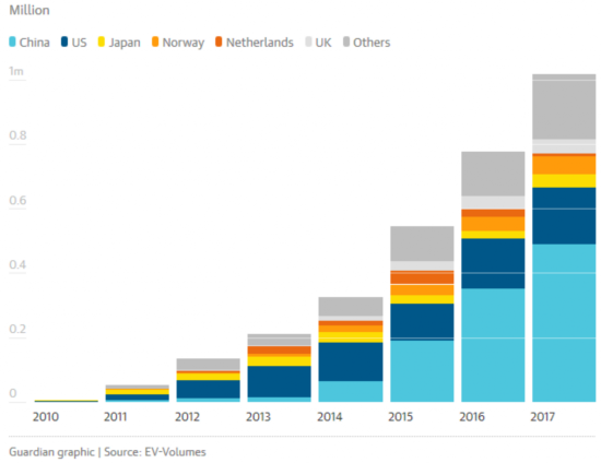 經(jīng)證實(shí),至2017年11月底,全球電動(dòng)汽車(chē)保有量已超過(guò)300萬(wàn)輛。2017年前11個(gè)月電動(dòng)汽車(chē)銷(xiāo)量超過(guò)100萬(wàn)。