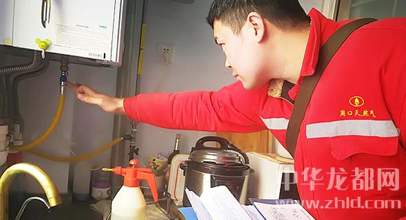 1月11日,周口天然氣公司技術(shù)員在一居民家中檢查天然氣安全使用情況。近日,我市氣溫下降,為切實保障我市居民燃?xì)庠O(shè)施的安全,周口天然氣公司工作人員對中心城區(qū)使用天然氣的用戶進(jìn)行了冬季燃?xì)獍踩膊榛顒印?/p>