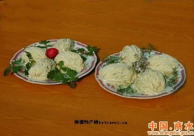 固墻手搟面有自己的獨特之處,遇水不散,出水不粘,溫潤涼爽。觀其形如玉帶臨風(fēng);察其色若飛雪鱗鱗;品其味似玉蘭入口;可謂面中極品!倘若用一細(xì)白瓷碗盛之,配以番茄雞蛋,蒜泥黃瓜,佐以涼啤,美極!爽極!享此美味,此樂何極!