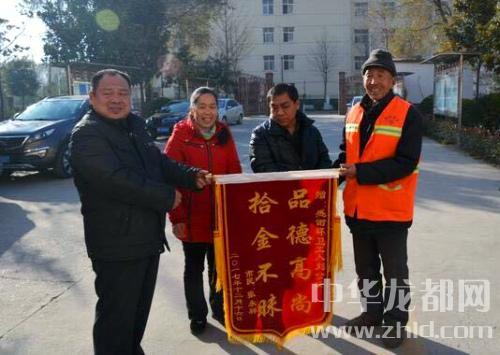 “失主丟了東西肯定很著急?!眲⒐椧贿呉贿叺?,在寒風中一等就是3個小時。終于,貌似失主的張先生和妻子行色匆忙的來到皂角樹廣場,劉公綏看到兩人比較著急,便主動上前詢問。經(jīng)詢問后確定他們就是失主,當即物歸原主。為表達謝意,三天后,失主張先生把一面寫有“拾金不昧,品德高尚”的錦旗親手送到劉公綏手上。