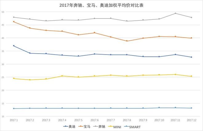銷售的數(shù)量固然重要,但是銷售質(zhì)量也是評估銷售力不能忽視的重要指標(biāo)。衡量銷售質(zhì)量,“加權(quán)平均成交價”和“單車?yán)麧櫋边@兩個重要參數(shù),也許讓我們更直觀的看到車企的銷售能力與經(jīng)銷商單店經(jīng)營質(zhì)量。這些更微觀的數(shù)據(jù)往往更能反映銷售公司及其經(jīng)銷商體系的銷售能力及水平?!凹訖?quán)平均成交價”反映車企的產(chǎn)品力與銷售公司的銷售能力,車企賣掉的車越多,單車價格越貴,品牌就越具有競爭力,反之就需要考慮改進產(chǎn)品,提升銷售管理能力?!皢诬?yán)麧櫋敝附?jīng)銷商銷售新車獲取的利潤,不含衍生利潤,一般在-4%-7%之間,如果單車?yán)麧櫝^-2%,廠家需要考慮對經(jīng)銷商進行補貼,如果利潤超過7%,車企就會調(diào)整經(jīng)銷商浮動返利。下面我們通過這兩個指標(biāo),來看哪些豪華車品牌在2017年表現(xiàn)更具實力。